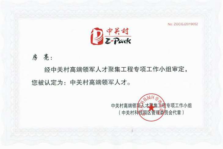 这一次房亮博士获得2019年度中关村高端领军人才的殊荣,不仅是对房亮博士创业领军能力的认可,也是对国科开云·官方站线上登录平台入口-开云(中国)未来发展的认可。